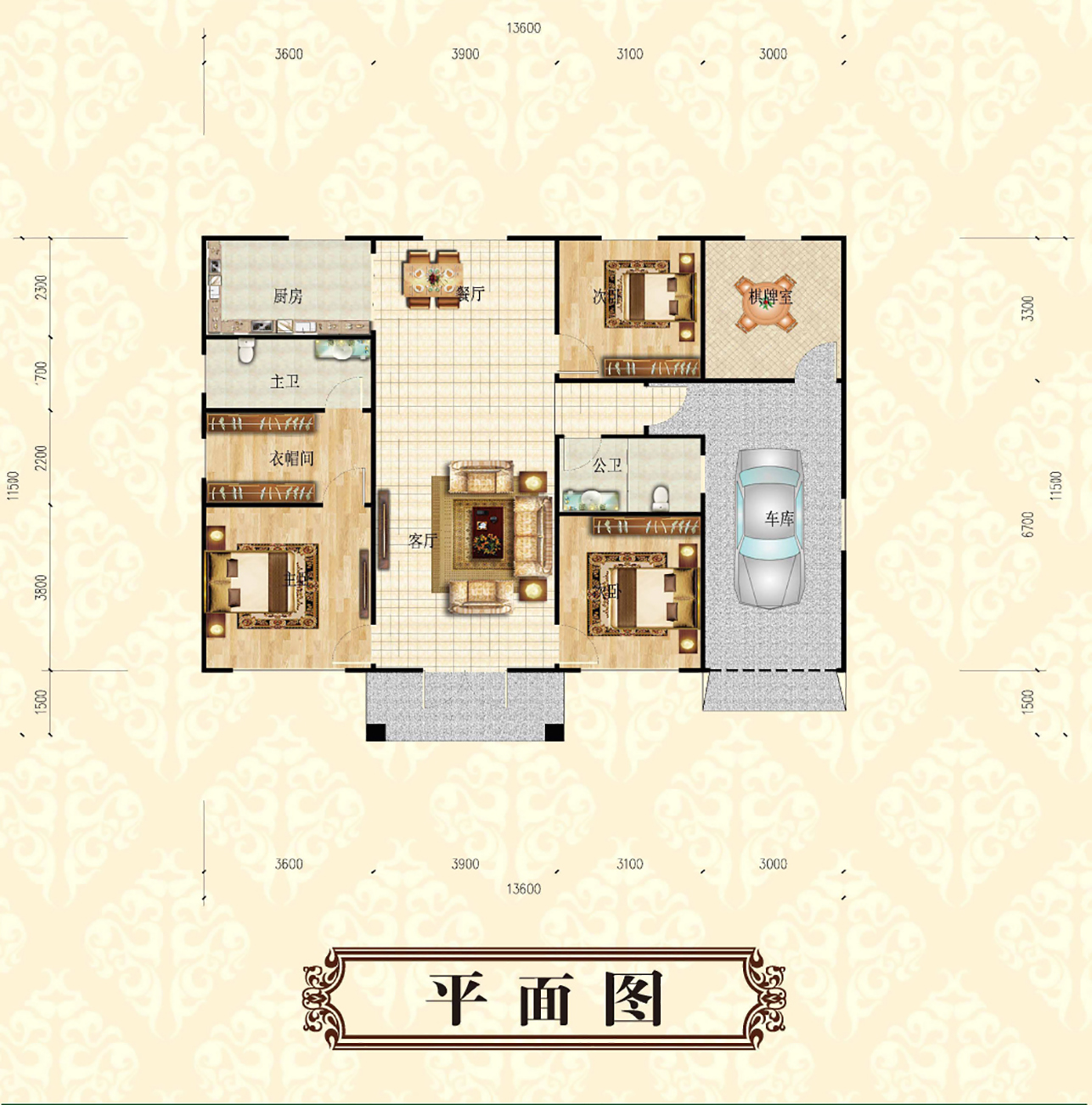L1戶型四室兩廳兩(liǎng)衛帶車庫 145m²