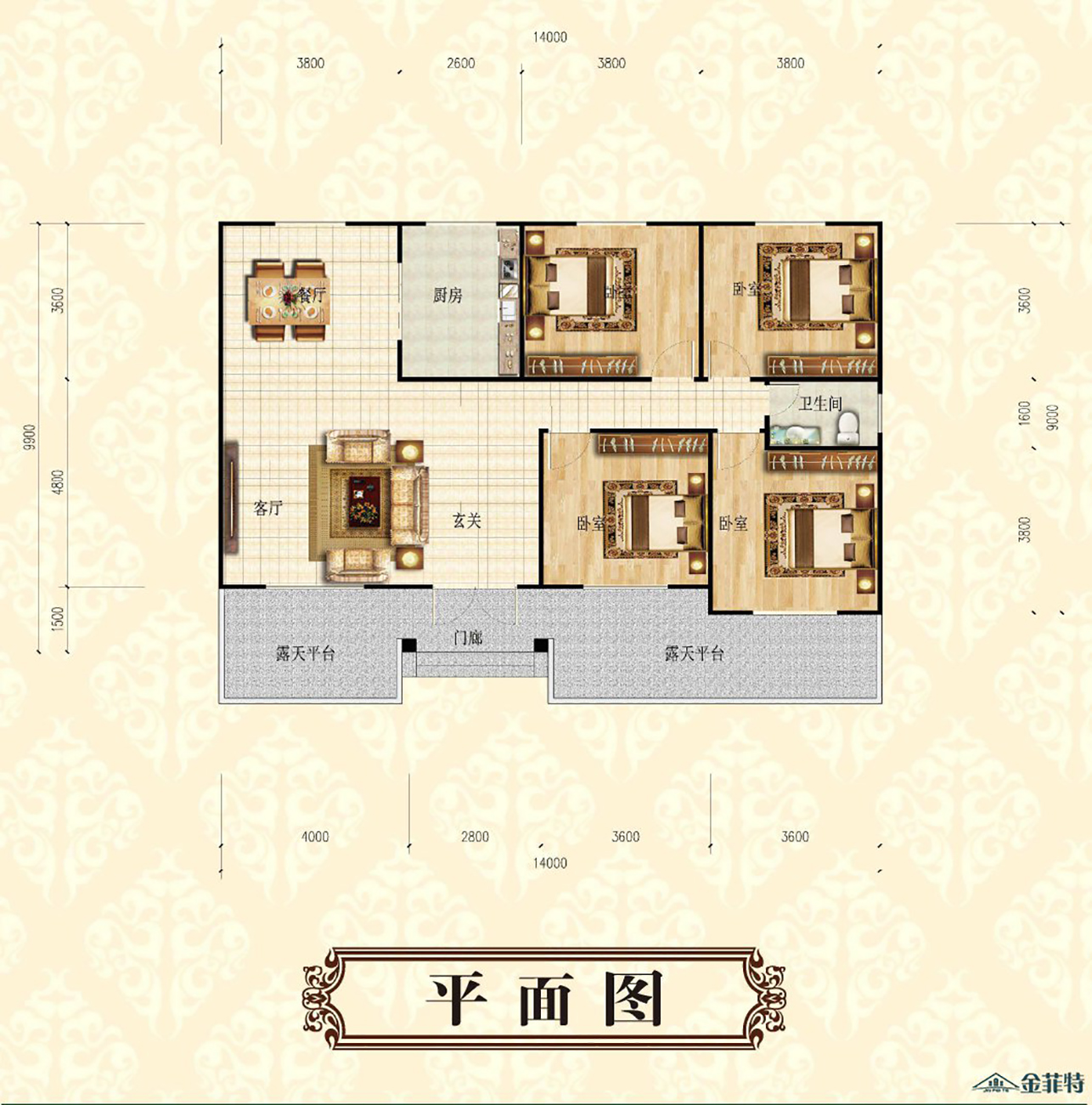 L1戶型四室兩廳兩(liǎng)衛 146.18m²