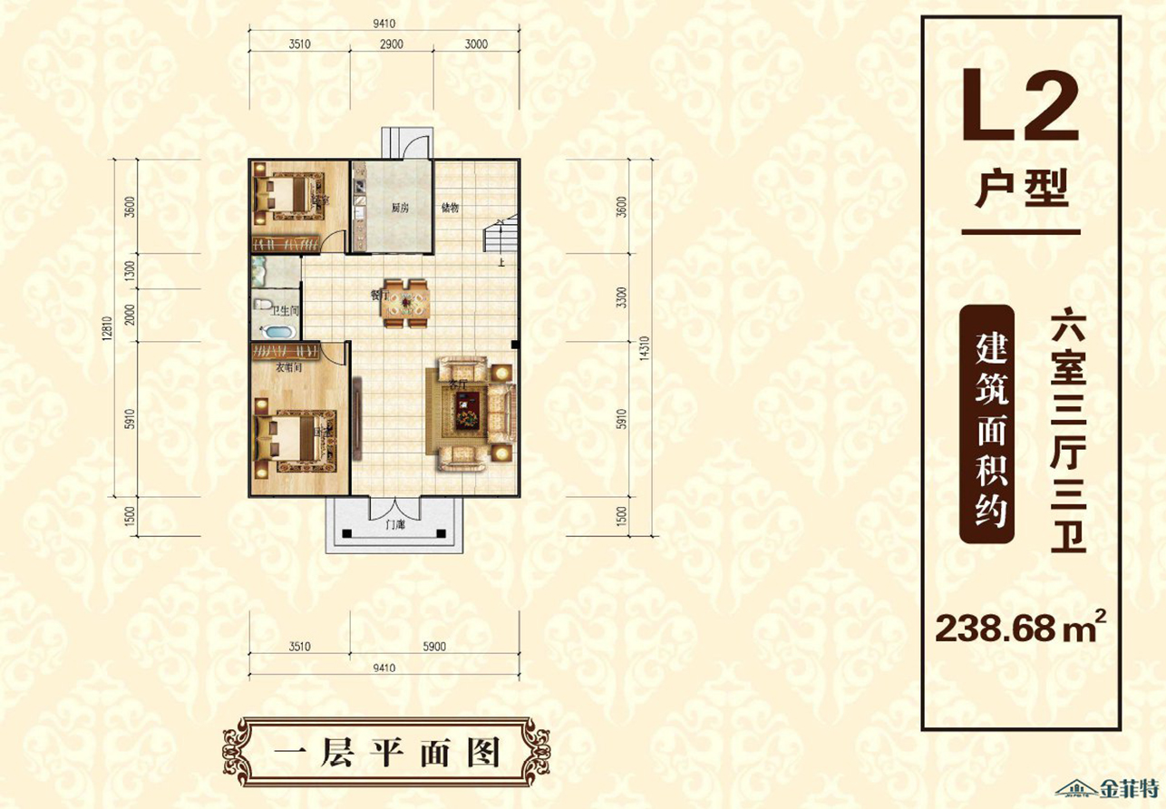 L2戶型六(liù)室三廳(tīng)三衛 238.68m²