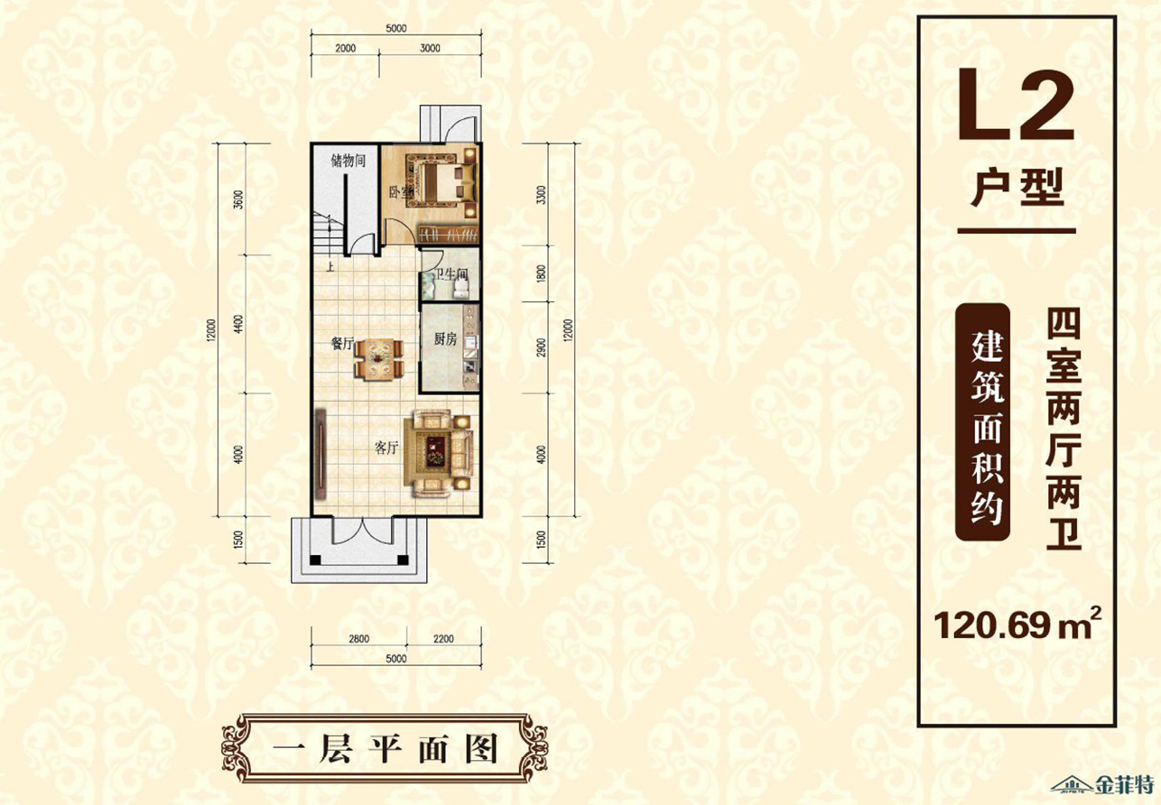 L2戶型四(sì)室兩(liǎng)廳兩衛 120.69m²