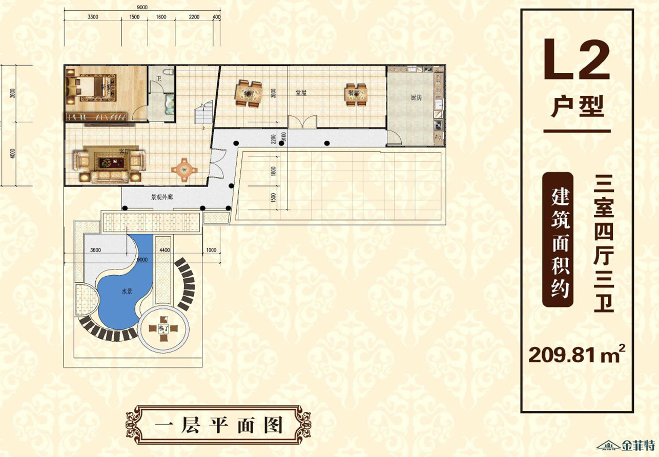 L2戶型六三室四廳三(sān)衛 209.81m²