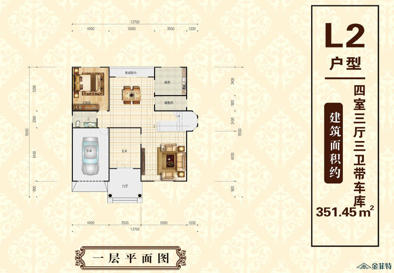 L2戶型四室三廳三衛帶車(chē)庫 351.45m²