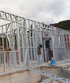 主(zhǔ)體采用雙麵熱鍍(dù)鋅275g/㎡的高(gāo)強冷軋鋼板,結構壽命可達90年以上。